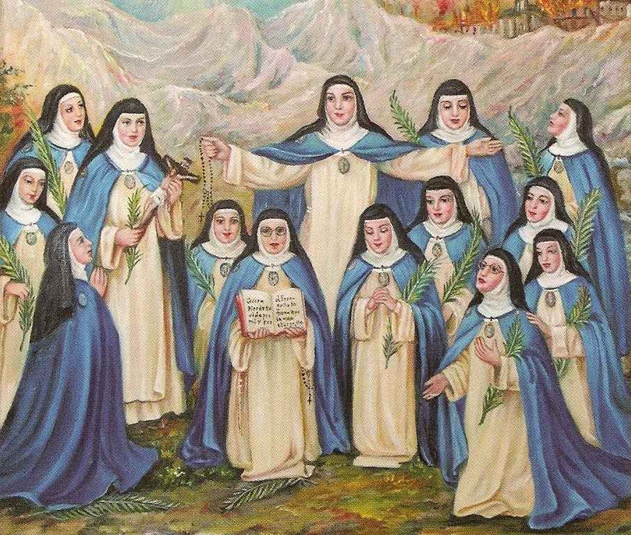 As monjas foram vítimas das atrocidades cometidas durante Guerra Civil espanhola, que ocorreu entre os anos de 1936 e 1939. A Frente Popular fazia uma violenta perseguição aos católicos. Milícias armadas pelo governo incendiaram e destruíram centenas de igrejas e conventos. Em Madrid, um grupo de religiosas passou por um longo período de perseguição. Elas foram obrigadas a deixar o convento em três ocasiões, vestindo roupas seculares, a fim de dispersar os perseguidores. Mas numa última tentativa de reunir novamente a comunidade religiosa, o grupo foi surpreendido pelos milicianos. Em 19 de julho de 1936, elas foram descobertas e alocadas em um cômodo, onde foram torturadas durante meses pelos revolucionários. Uma das monjas deixou por escrito que neste local elas rezavam a Liturgia das Horas, recitavam as 150 Ave-Marias dos 15 mistérios do Rosário, faziam leituras espirituais e dedicavam duas horas diárias à meditação. Deste modo, nunca faltou a presença de Deus neste período de provação.