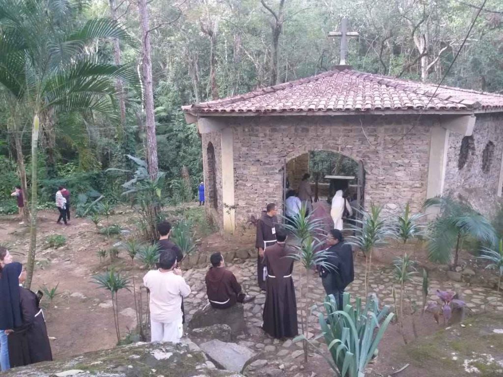 No período da tarde, fizeram uma caminhada a fim de conhecer um espaço da Fazenda da Esperança onde existe uma Capela de Pedra e um riacho. Concluíram o dia com a Noite Fraterna, celebrando a vida e a vocação.