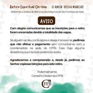 Convidamos a participar do III Retiro Franciscano On-line onde refletiremos “O amor deixa marcas”: refletindo o Jubileu de 800 anos dos Estigmas de São Francisco de Assis.