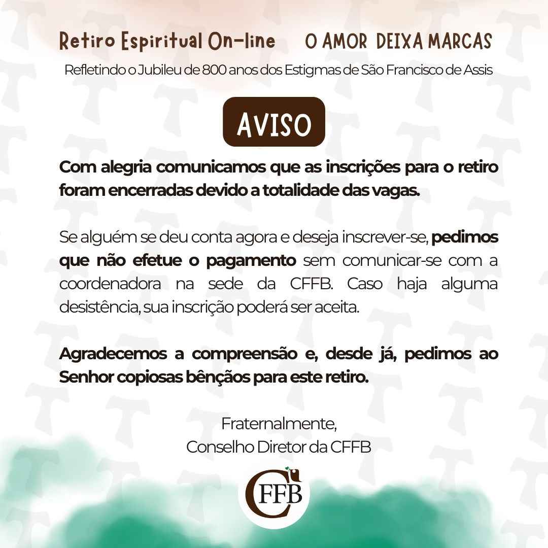 Convidamos a participar do III Retiro Franciscano On-line onde refletiremos “O amor deixa marcas”: refletindo o Jubileu de 800 anos dos Estigmas de São Francisco de Assis.