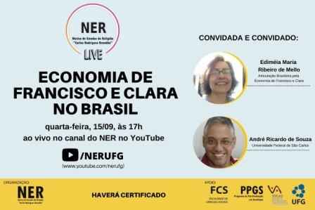 Na próxima quarta-feira, dia 15 de setembro haverá a primeira LIVE do NER/UFG deste semestre para discutir a Economia de Francisco e Clara no Brasil.