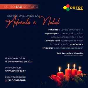 A Igreja está se aproximando do tempo do Advento e do Natal, um dos momentos mais importantes para vivenciar a fé. Por isso, a ESTEF está oferecendo um curso de extensão a distância e gratuito. Uma oportunidade para aprofundar e conhecer a espiritualidade do Advento e do Natal.