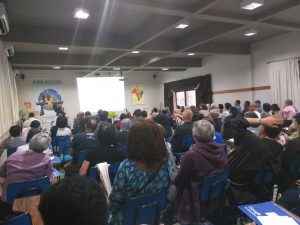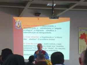 Logo após o café, tivemos a presença do Frei Luiz Carlos Susin que refletiu sobre o tema dessa Assembleia: “Que Mundo? Que Igreja? Que Franciscano/as?”