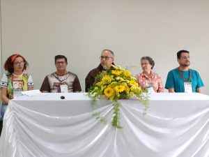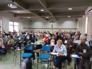 Após a fala do Frei Susin, houve a composição da mesa composição da mesa do atual Conselho Diretor e Instalação da XVIII Assembleia Geral Ordinária Eletiva da CFFB.
