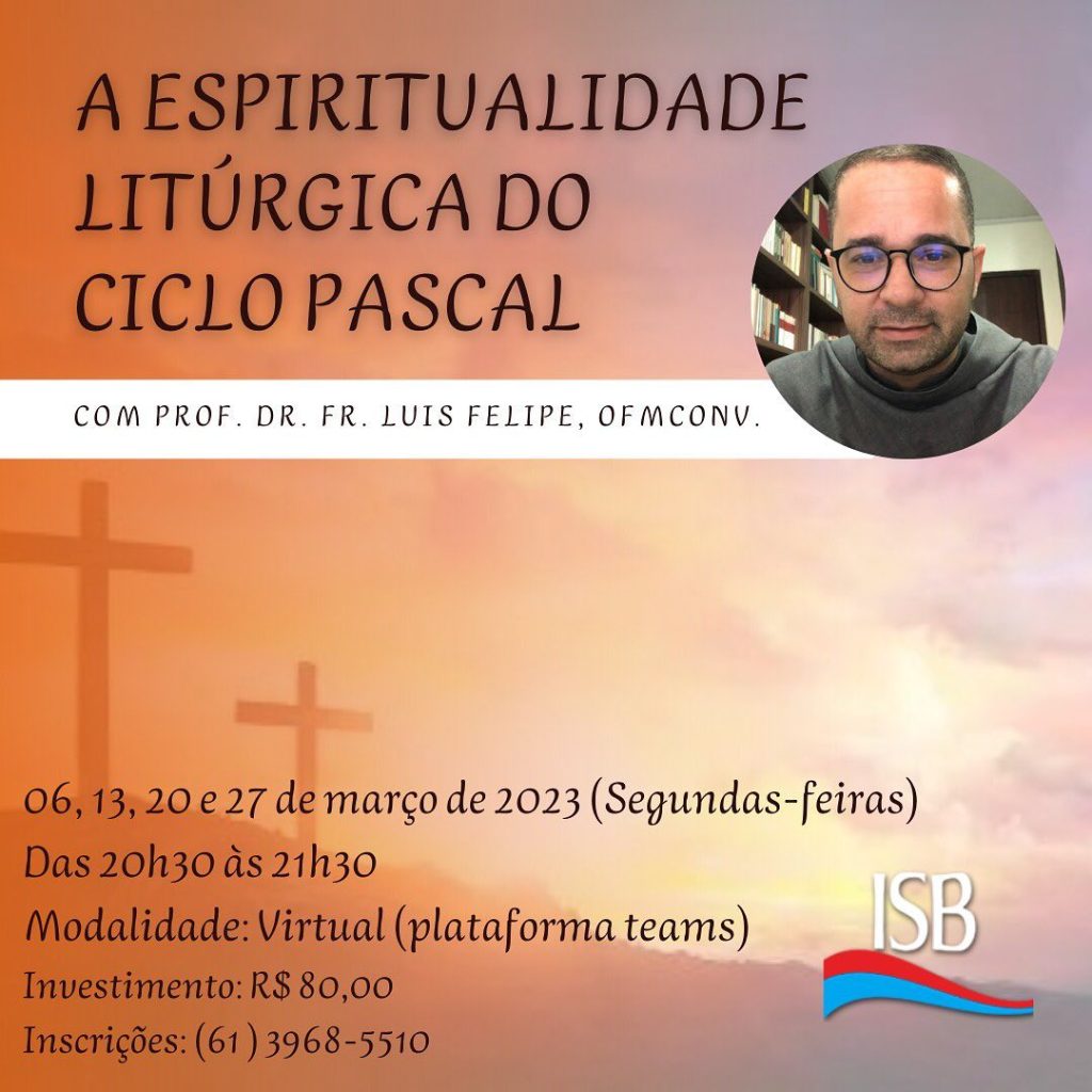 O ISB promove neste ano uma formação litúrgica on-line sobre a “espiritualidade do ciclo Pascal” (quaresma, Páscoa e Pentecostes), com o nosso prof. Dr. Fr. Luis Felipe (OFMConv.). O curso é aberto a todos. Faça a sua inscrição pelo nosso telefone (61) 3968-5510 ou pelo e-mail secretaria@isb.org.br Nos dias do curso (06, 13, 20 e […]