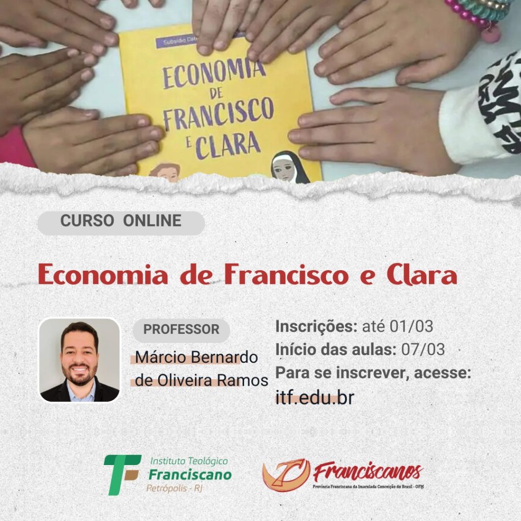 As aulas serão realizadas às terças-feiras, nos dias 07, 14, 21 e 28/03, de forma remota, através da ferramenta Google Meet, de forma síncrona. Horário: 19h30 às 21h30m O pagamento do curso será em 1 parcela de R$ 50,00, sendo a primeira no ato da inscrição. Objetivos – Apresentar a Economia de Francisco e Clara; […]