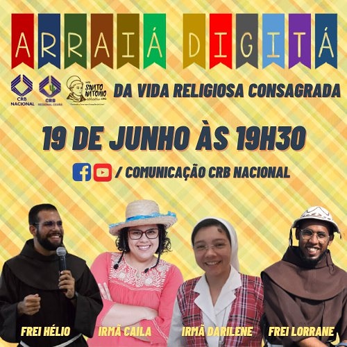 ARRAIÁ DIGITÁ DA VIDA RELIGIOSA CONSAGRADA: É amanhã! Passando aqui para lembrar à todos da nossa Live Junina, o 2º Arraiá da Vida Religiosa Consagrada do Brasil. Vai ser um lindo e alegre momento e vocês não podem perder. É amanhã, 19 de junho, às 19h30min através das redes sociais da CRB Nacional, bem como […]