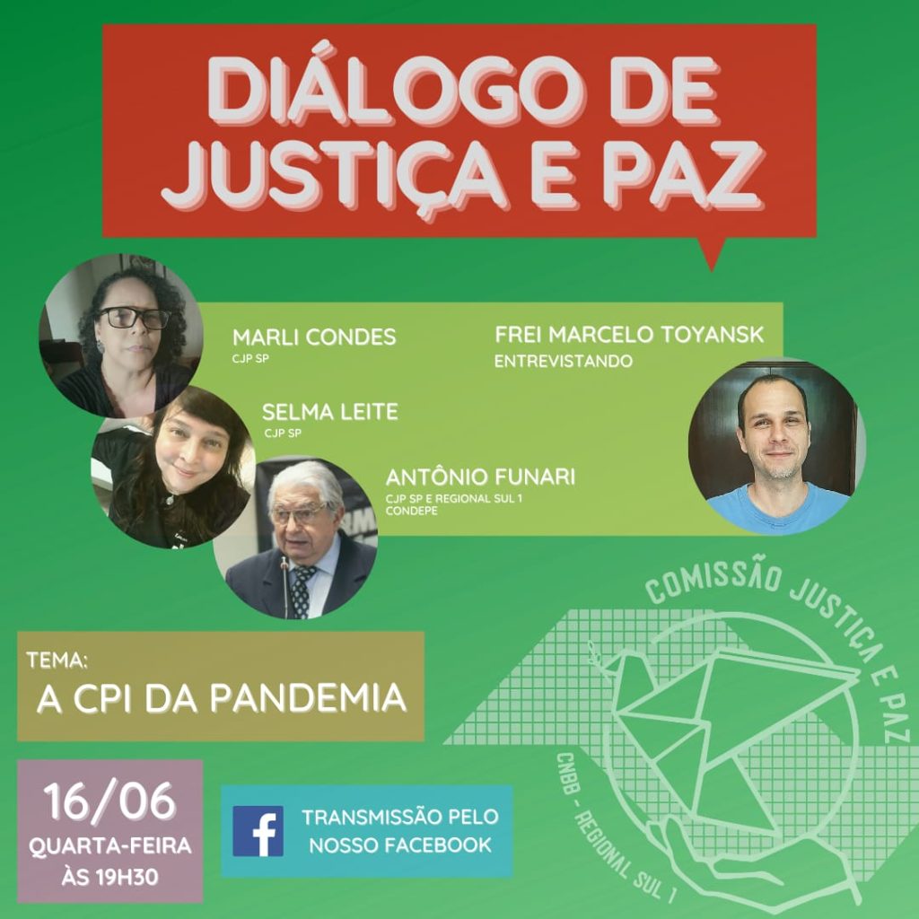 O DIÁLOGO de JUSTIÇA E PAZ convida, nesta quarta, um diálogo on-line sobre a CPI da PANDEMIA.