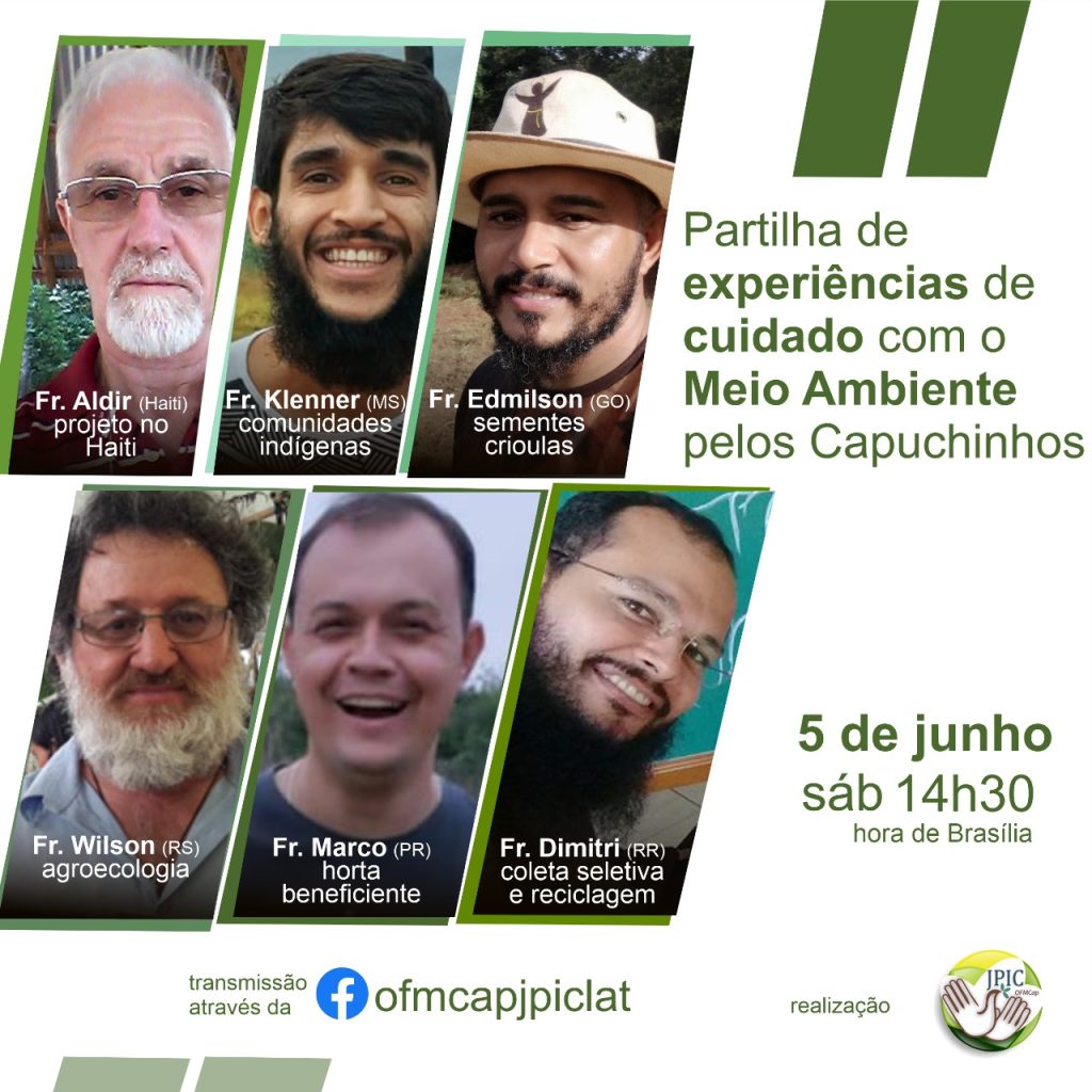 No Dia Mundial do Meio Ambiente, 5 de junho, às 14h30, os Frades Capuchinhos partilham experiências de CUIDADO DO MEIO AMBIENTE em variadas realidades em que atuam. Acompanhe a transmissão no Facebook