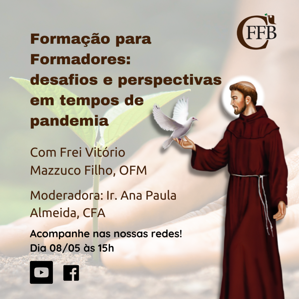 A Live contará com a participação de frei Vitorio Mazzuco, OFM e irmã Ana Paula Almeida, CFA como moderadora. 📺 Será transmitida pelo Canal da CFFB no Youtube: 📌 Lembre-se, dia 08 de maio, às 15h. Contamos com sua participação! Curta, Comente e Compartilhe. 🙂 Fraternalmente, Serviço de Comunicação da CFFB