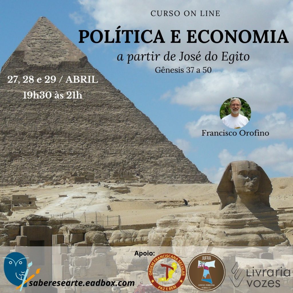 Paz e bem irmãs e irmãos, que o Senhor nos conceda a paz! O grupo Saberes e Arte, em parceria com nosso Regional, irá promover nos dias 27, 28 e 29 de abril, horário de 19h30 as 21h, o curso online chamado “Política e Economia a partir de José do Egito”, o palestrante deste […]