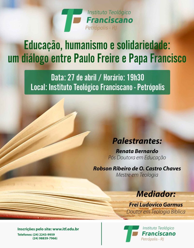 O Instituto Teológico Franciscano promove a palestra “Educação, humanismo e solidariedade: um diálogo entre Paulo Freire e Papa Francisco”