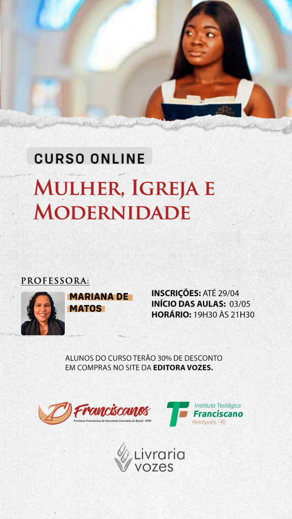 Instituto Teológico Franciscano abre inscrição para Curso de Extensão: “Mulheres, Igreja e Modernidade”. O curso vai analisar as construções católicas acerca da figura e dos papéis da mulher diante de transformações sociais e políticas que reconfiguram modos de vida, tradições e autoridade. Também vai analisar os lugares e papéis atribuídos a figuras femininas no que […]