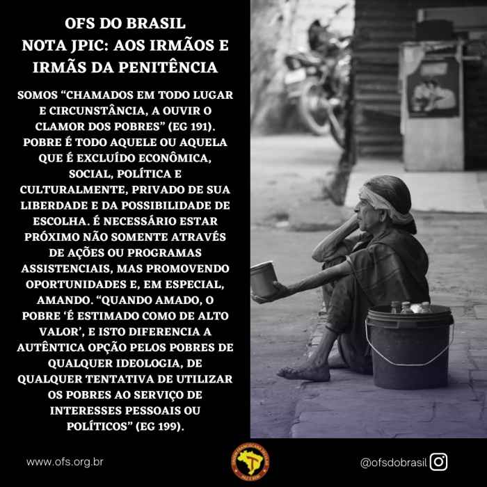 Download – Nota JPIC Rio de Janeiro, 12 de abril de 2022. Aos irmãos e às minhas irmãs da Penitência… “Somos esposos, quando a alma fiel está unida a Nosso Senhor Jesus Cristo pelo Espírito Santo. Somos seus irmãos, quando fazemos ‘vontade do Pai, que está nos céus’ (Mt 12,50). Somos mães, quando o […]