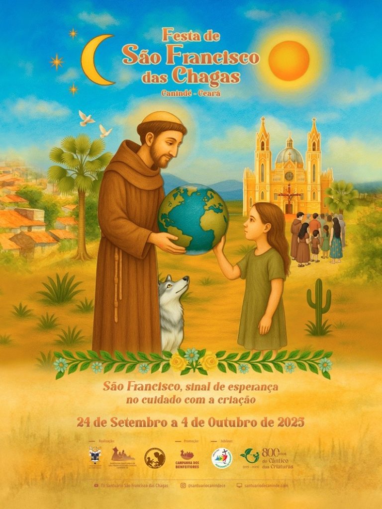 O Santuário de Canindé lançou a programação da Festa de São Francisco das Chagas 2025, com o tema “São Francisco, sinal de esperança no cuidado com a criação”. A celebração ocorre dentro do Ano da Esperança e do jubileu do Cântico das Criaturas. Destaque para a novena simplificada e o novo cartaz com símbolos regionais. […]
