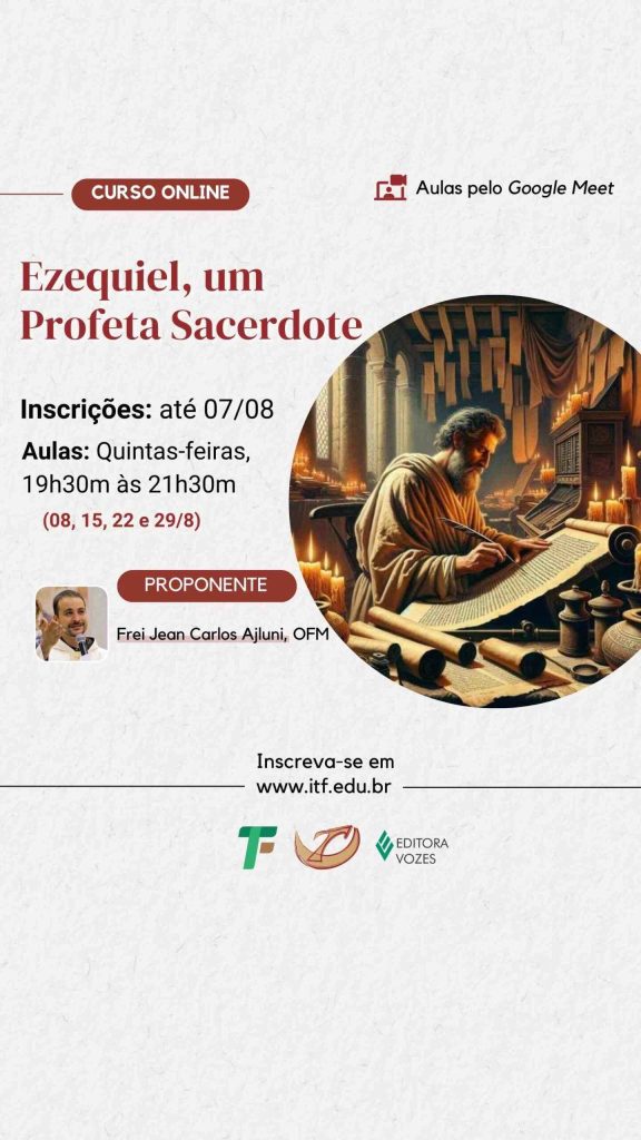 As aulas serão realizadas as Quintas-feiras, nos dias; 8, 15, 22 e 29 de agosto, das 19h30 às 21h30, de forma remota, através da plataforma Google Meet. Horário: 19h30 as 21h30. O pagamento do curso será em uma parcela de R$ 70,00, no ato da inscrição. Objetivos – Situar a obra de Ezequiel dentro do movimento profético do AT; – Conhecer o ambiente da produção […]