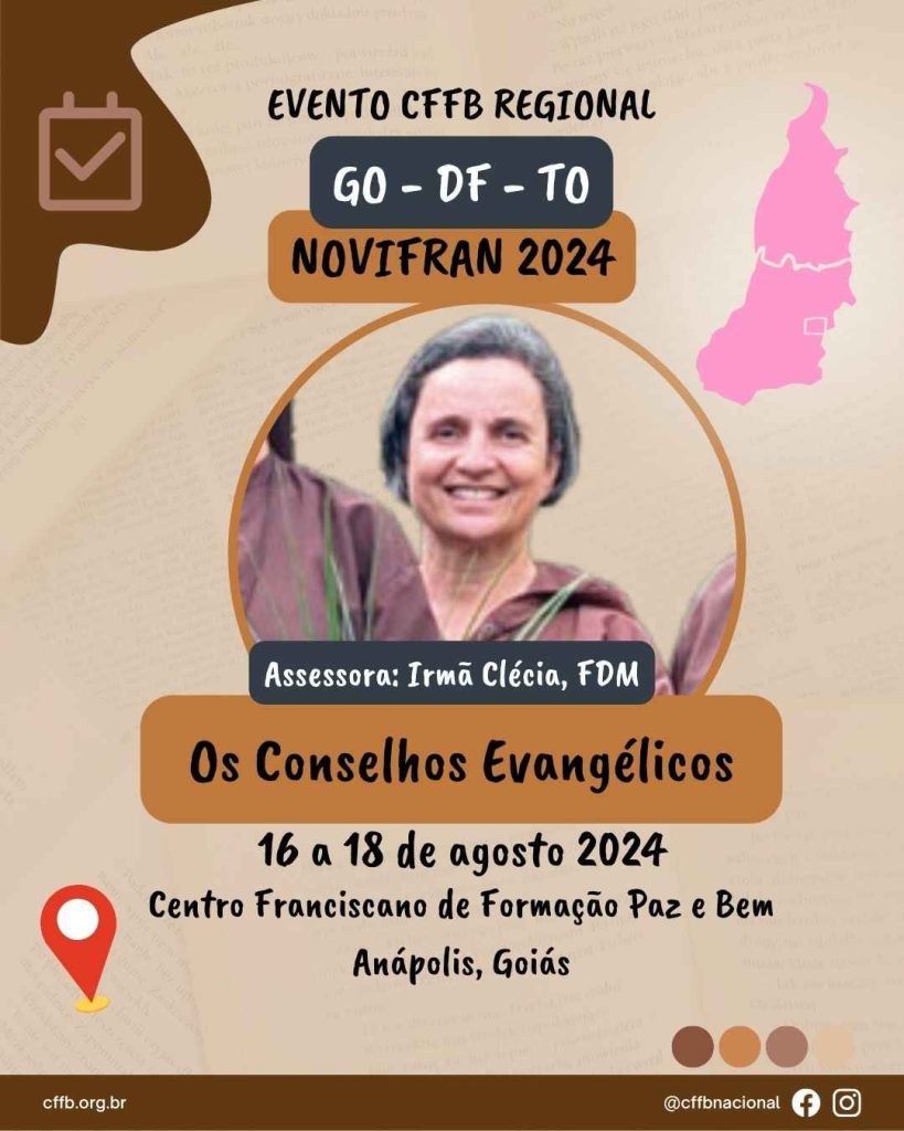 Inscrição Carta Convite Prezados Irmãos e Irmãs: Formadores(as), Noviços(as) das Congregações e Fraternidades da Ordem Franciscana Secular, vem aí o NOVIFRAN, encontro planejado para vocês. Paz e Bem! Acredita-se que há entre nós desejo e esforço para uma melhor integração de todos (as) nós como uma só família. E não poderia ser diferente, pois bebemos […]