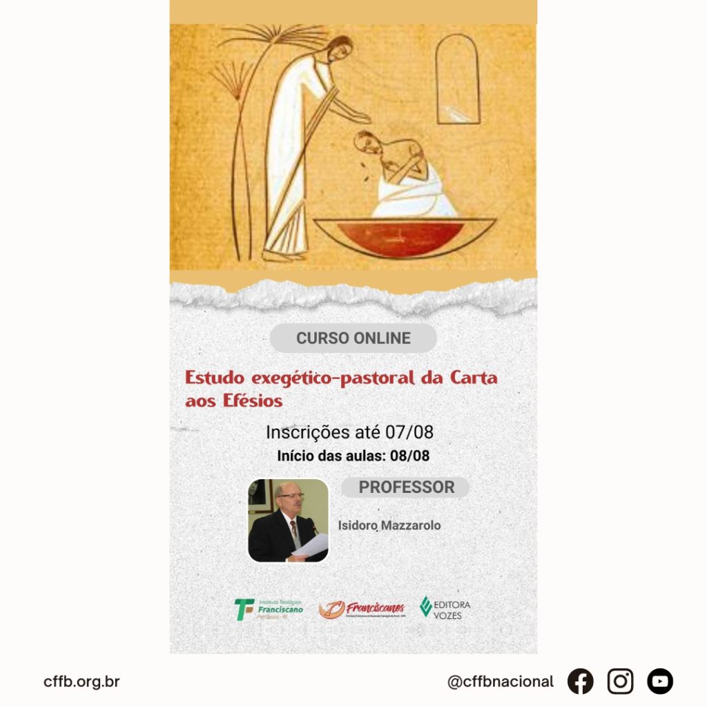 As aulas serão realizadas as terças-feiras, nos dias 08, 15, 22 e 29/08/2023, de forma remota, através da ferramenta Google Meet, de forma síncrona. Horário: 19h30 as 21h30. O pagamento do curso será em uma parcela de R$ 60,00, no ato da inscrição. Objetivos Principal: Resgatar as linhas mestras da carta como propostas fundamentais para uma Igreja em saída, solidária […]