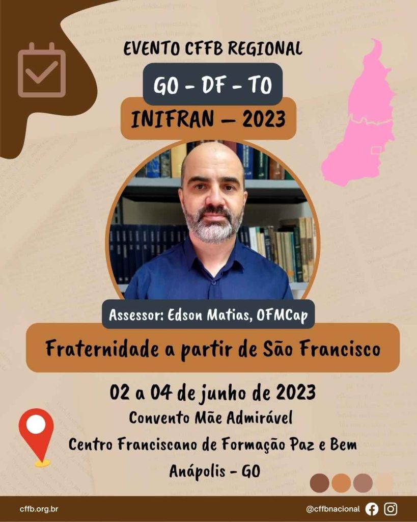 Carta Convite Anápolis, 15 de Maio de 2023 Prezados Irmãos e Irmãs: Formadores(as), Aspirantes, Postulantes das Congregações e Fraternidades Franciscanas, JUFRA, Associados(as) e amantes de São Francisco de Assis, Paz e Bem! Que o Cristo Ressuscitado permaneça conosco! Acredita-se que há entre nós desejo e esforço para uma melhor integração de todos(as) nós como […]