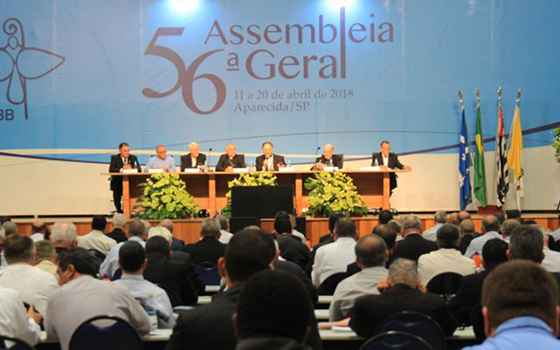 O cardeal Sergio da Rocha, presidente da CNBB, deu uma Coletiva de Imprensa na 56ª Assembleia Geral da entidade, na tarde do dia 19 de abril, e pediu a dom Murilo Krieger, vice-presidente que lesse a mensagem da conferência ao povo de Deus