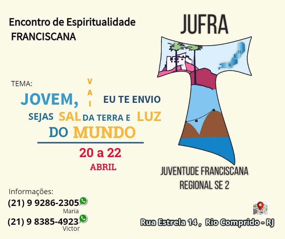 Queridos irmãos e irmãs das fraternidades de nosso regional, paz e bem! Tenho a imensa alegria de escrever esta carta de convocação para o nosso Encontrar REGIONAL DA JUFRA . 1- Convocados e local Convocamos os JUFRISTAS (todos os membros da fraternidade, inclusive os que não fizeram rito de compromisso, mas estão em formação e […]