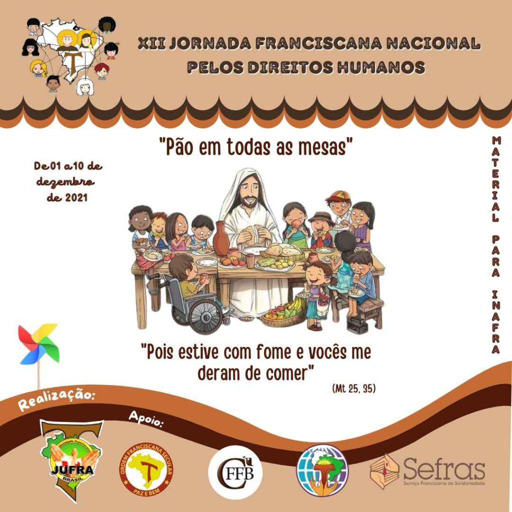 Material JUFRA Material INAFRA Queridas irmãs e irmãos, Paz e Bem! 🙏🏽 Com entusiasmo, fé e esperança apresentamos a 12ª Jornada Franciscana Nacional pelos Direitos Humanos, promovida pela JUFRA do Brasil. Com o tema: “Pão em todas as mesas” e lema: “Pois eu estava com fome, e vocês me deram de comer” (Mt 25,35). 👣 […]