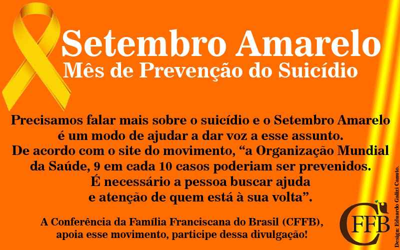O mês traz à luz um assunto muito importante: o suicídio. A Conferência da Família Franciscana do Brasil (CFFB) apoia esse movimento, participe dessa divulgação!