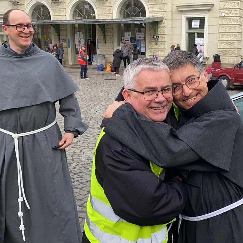Ministro Geral dos Franciscanos Conventuais visita ferroviária que chegam refugiados ucranianos na Polônia