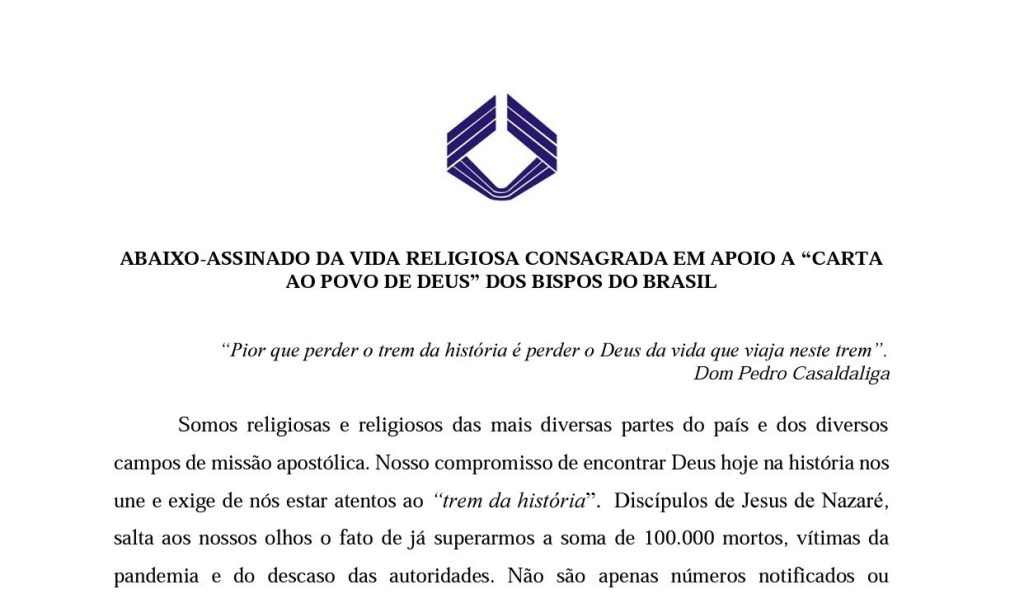 Abaixo-assinado da vida religiosa consagrada em apoio a “Carta ao Povo de Deus”