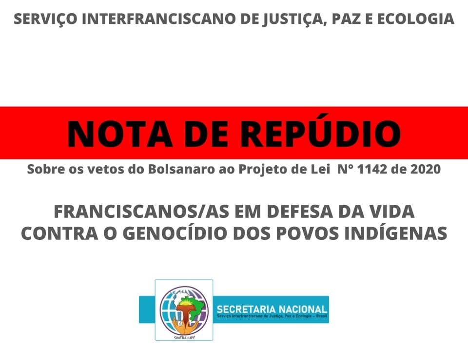 Download NOTA DE REPÚDIO DO SERVIÇO INTERFRANCISCANO DE JUSTIÇA, PAZ E ECOLOGIA AOS VETOS PRESIDENCIAIS AO PL 1142/2020 O Serviço Interfranciscano de Justiça, Paz e Ecologia – SINFRAJUPE, na defesa da vida e da dignidade humana, vem a público manifestar seu repúdio às contínuas políticas genocidas do governo Bolsonaro. Ao vetar dezesseis importantes dispositivos, do […]