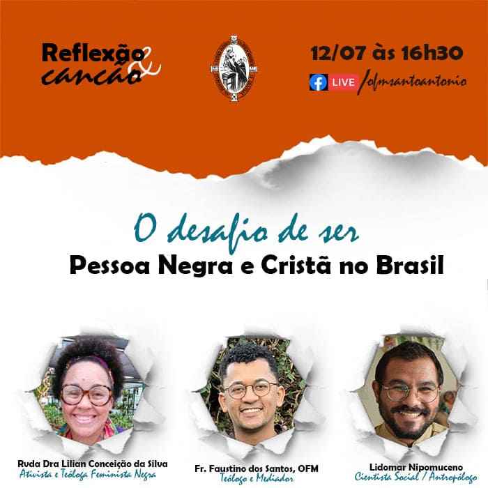 No próximo domingo, dia 12 de julho, Frei Faustino, mediador do Reflexão e Canção, acolherá para a conversa sobre “O desafio de ser pessoa negra e cristã no Brasil” a Rvda Dra Lilian Conceição da Silva da Igreja Episcopal Anglicana e o Cientista Social Lidomar Nepomuceno. O encontro será às 16h30 no Facebook da Província […]