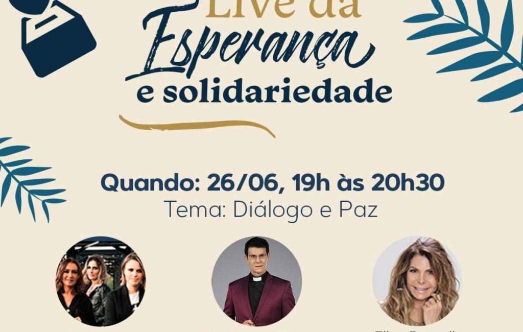 A próxima Live da Esperança e da Solidariedade acontece sexta-feira, 26 de junho, das 19h às 20h30, com o tema “Diálogo e Paz”. Participam o padre Reginaldo Manzotti e os Cantores de Deus. A cantora Elba Ramalho faz uma participação especial. O padre Manzotti gravou um vídeo reforçando o convite para os cristãos participarem da […]