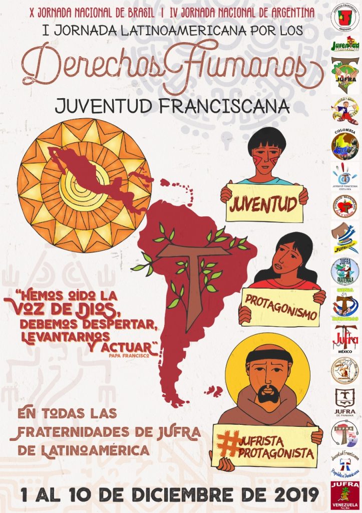 Irmãos/ãs, compartilhamos o cartaz da 1ª Jornada Latino-Americana pelos Direitos Humanos, da JUFRA da América Latina. Seguindo as Conclusões do X Congresso Latino-Americano OFS-JUFRA (Guatemala, janeiro 2019) Tema: Juventude e Protagonismo Lema: “Ouvimos a voz de Deus, devemos acordar, levantar e atuar” (Papa Francisco) Data: 1 a 10 de Dezembro de 2019 Lugar: Todas as […]