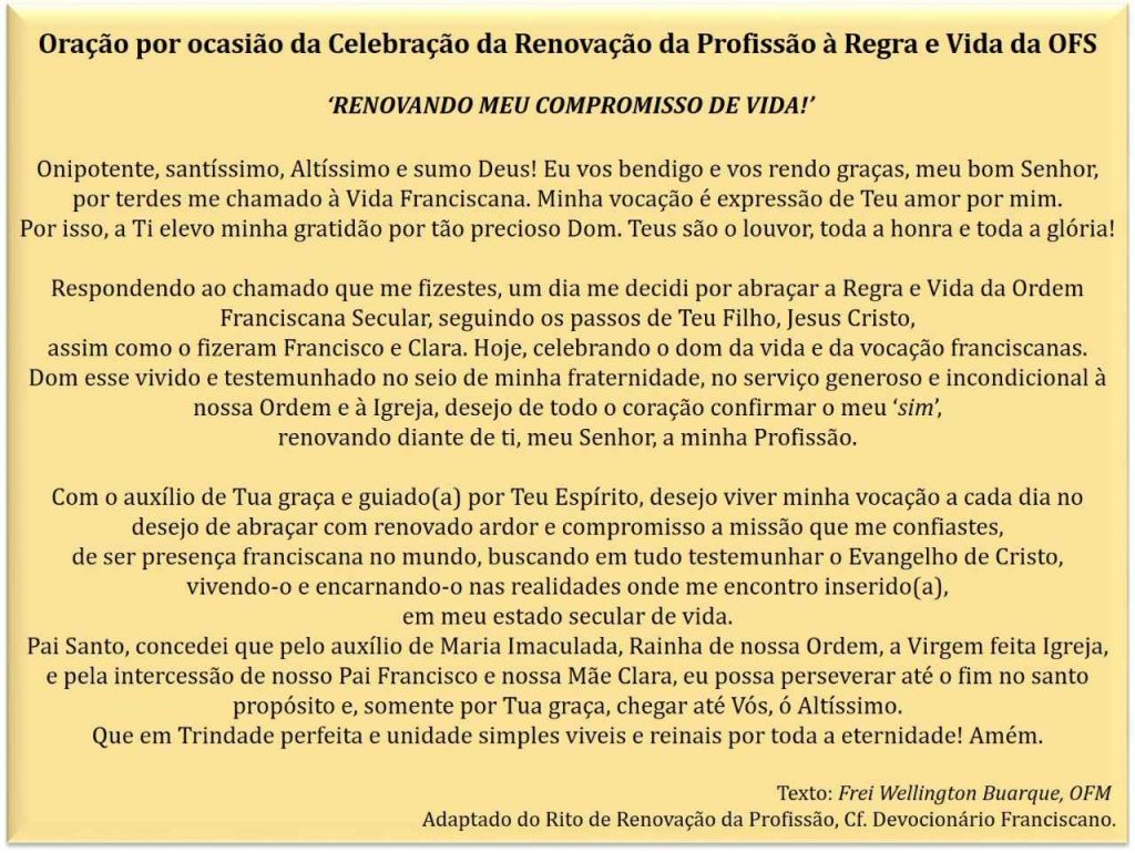 Oração por ocasião da Celebração da Renovação da Profissão à Regra e Vida da OFS