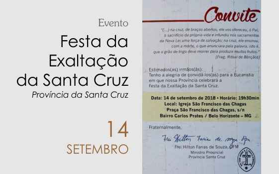 Estimadas irmãs e irmãos, Temos a alegria de convidá-los para a Eucaristia em que nossa Província celebrará a Festa da Exaltação da Santa Cruz. • Data: 14 de setembro de 2018 • Horário: 19h30min • Local: Igreja São Francisco das Chagas – Praça São Francisco das Chagas, s/n. Carlos Prates – Belo Horizonte – MG […]