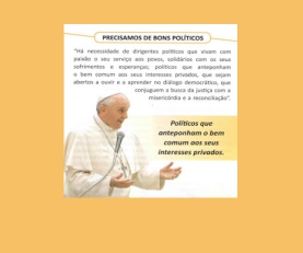 Em outubro escolheremos, através do voto nossos representantes políticos para os Poderes Legislativo e Executivo do país, em âmbito estadual e nacional. É uma grande missão nossa,exercer a cidadania através do voto consciente que tem consequências para a vida de todos os brasileiros e brasileiras. O Documento 105 da CNBB “Cristãos Leigos e Leigas na […]