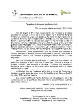 Pacaraima: indignação e solidariedade – Comissão Episcopal para a Amazônia