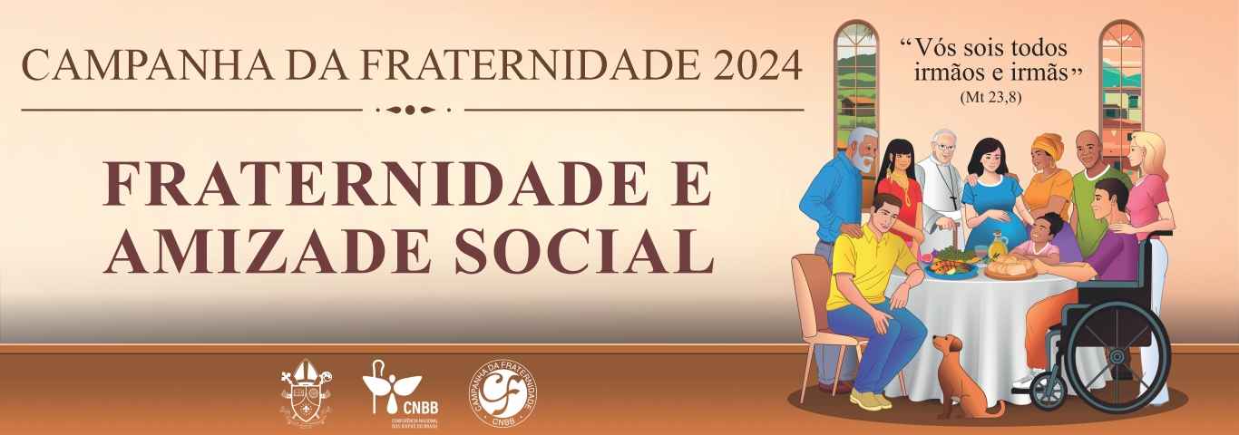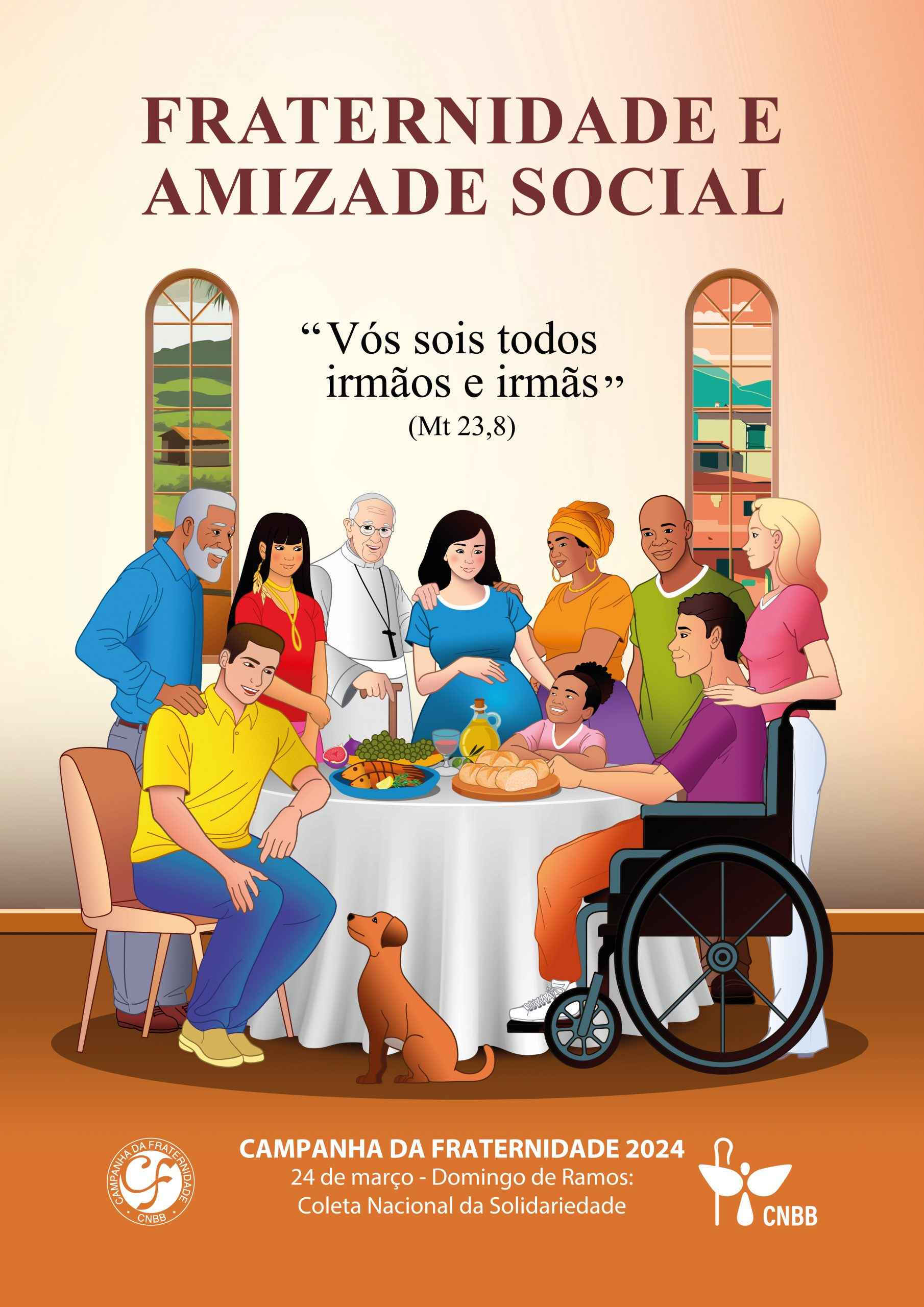 Fonte: ANEC[/vc_wp_text][/vc_tta_section][/vc_tta_tabs][vc_separator color=”black” border_width=”2″][vc_column_text]A Conferência Nacional dos Bispos do Brasil (CNBB) lançou nesta terça-feira, 25 de julho, o cartaz e a oração da Campanha da Fraternidade 2024. Inspirada na Encíclica do Papa Francisco, Fratelli Tutti, a Campanha da Fraternidade (CF) de 2024 tem como tema: “Fraternidade e Amizade Social” e o lema: “Vós sois todos irmãos e irmãs” (Mt. 23, 8). Este tema e lema foram escolhidos pelo Conselho Permanente da Conferência Nacional dos Bispos do Brasil (CNBB), em novembro de 2022.
