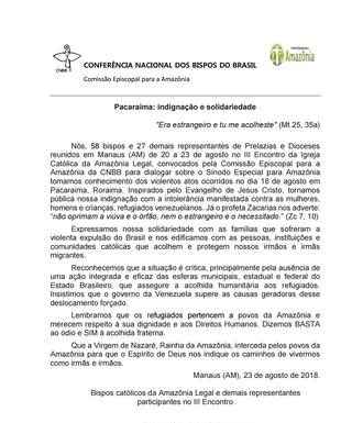 Pacaraima: indignação e solidariedade – Comissão Episcopal para a Amazônia