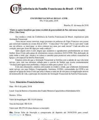 Nos dias 31 de maio e 01 de junho, a Família Franciscana de Uberlândia, em conjunto com a Custódia Franciscana do Sagrado Coração de Jesus, promoverá o seu Encontro de Liturgia e Cantos 2019. Os dois dias são voltados...
