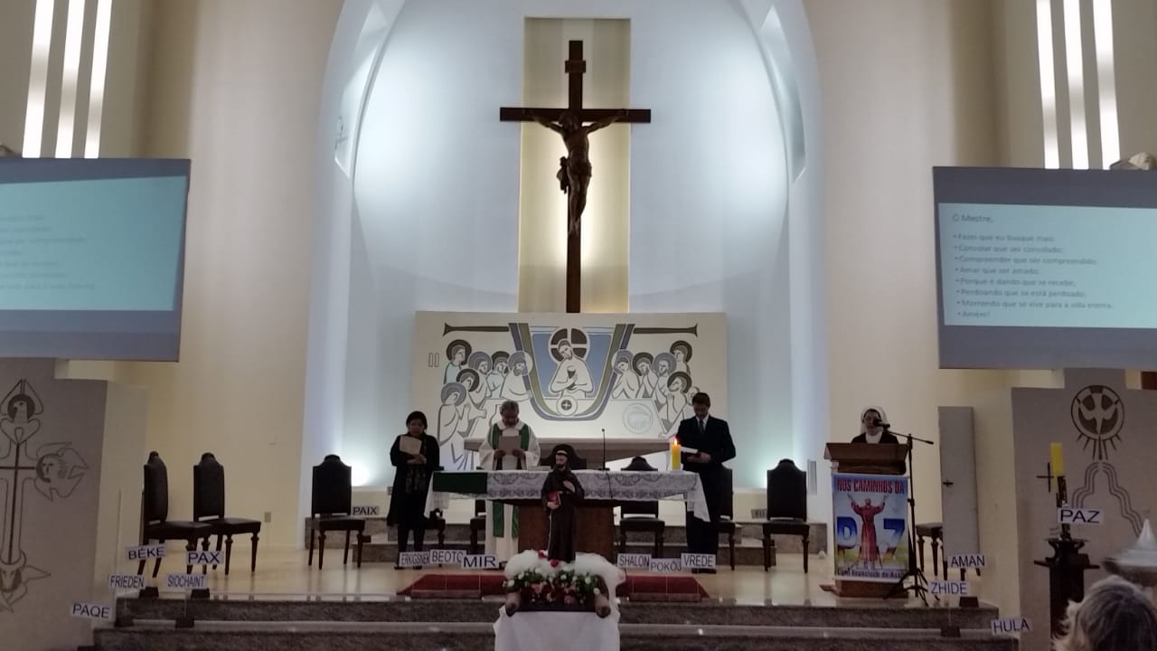 A animação e condução da mesma estava ao encargo da CFFB-RS, também celebrando seus 50 anos de presença no RS. Com a presença do pároco Frei Nelson Müller – OFM, Ir. Lourdes Mantovani – CIFA e coordenadora da CFFB-RS), Rabino Guershon, (Rabino do Judaísmo, Coordenador do Grupo de Diálogo Inter-religioso em Porto Alegre) Lea Boss Duarte, (Federação Espírita-RS), integrantes da CFFB-RS e comunidade paroquial.