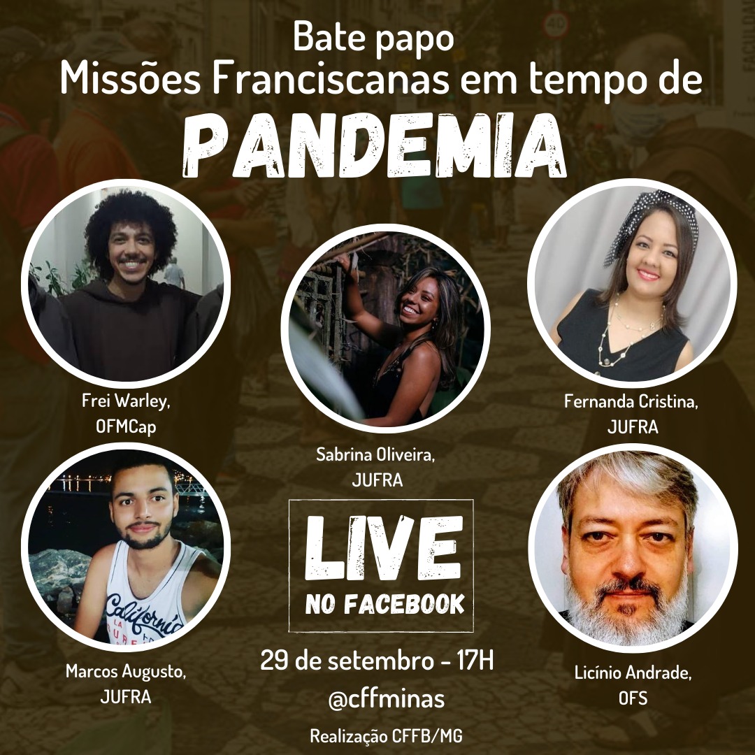 A coordenação da Conferência da Família Franciscana – Regional Minas Gerais (CFFB/MG) convida a todos para a live “Missões Franciscanas em tempo de pandemia”, a ser transmitida pela página do Facebook.
