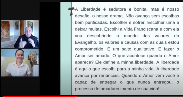 A Live teve como tema “os desafios e as perspectivas em tempos de pandemia”. Ela contou com participação da Irmã Ana Paula Almeida, CFA, como moderadora; e a reflexão de Frei Vitório Mazzuco, OFM, que trouxe a todos as irmãs e irmãos um novo ânimo frente as formações francisclarianas nesses tempos tão desafiadores.