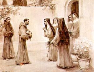 Santa Clara de Assis, admirada e conhecida como fiel discípula de São Francisco que, por sua vez, a iniciou no seguimento do caminho do Filho de Deus, foi a grande mulher orante, contemplativa e intercessora, recolhida com as suas Irmãs Pobres no estreito convento do Mosteiro de São Damião de Assis. Ela escolheu viver uma vida “segundo a perfeição do santo Evangelho” (RSC VI 3) e abraçou a santíssima vida de pobreza, morando à beira da estrada, fora da segurança dos muros de Assis. Clara jamais se isolou das aflições e dores dos homens e das mulheres do seu tempo: sejam as pessoas que habitavam na segurança fortificada da cidade de Assis, como as que, como ela, viviam do “lado de fora” a sorte dos pobres, leprosos, marginalizados e de todos que depositavam sua única e última confiança na providência de Deus.