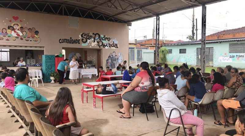 Após a reflexão, os presentes participaram de um almoço comunitário, preparado com o apoio de voluntários e doadores. O cardápio incluiu arroz, feijão, linguiça toscana, purê de batata, salada de repolho e tomate, acompanhados de refrigerante. Como sobremesa, foram distribuídas fatias de melancia, e as famílias também puderam levar pães recheados para casa, garantindo um complemento alimentar para seus lares.