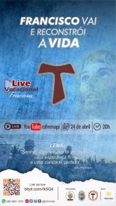 “Francisco vai e reconstrói a vida” é o tema que irá nos conduzir durante toda a live que acontecerá neste dia 24 de abril e que você não pode ficar de fora. “Senhor, dai-me uma fé verdadeira, uma esperança firme e uma caridade perfeita”, foi o lema inspirado pela oração de Nosso Pai Seráfico São Francisco de Assis e fundador da Ordem dos Frades Menores.