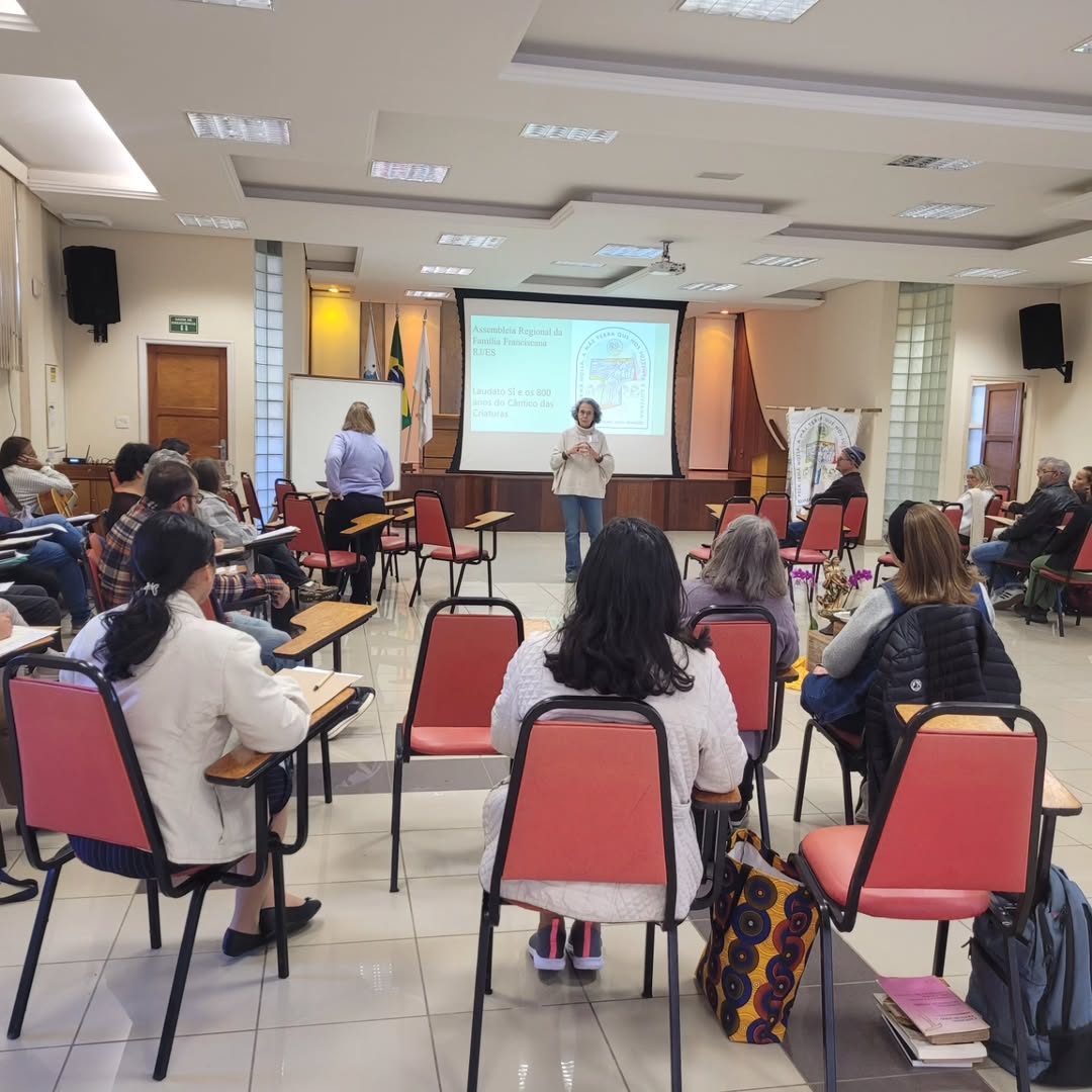 Realizada no dia 03 de agosto no Instituto Teológico Franciscano de Petrópolis/RJ, a Assembleia do Regional Rio de Janeiro e Espírito Santo, e Encontro Formativo em comemoração aos 800 anos do Cântico das Criaturas, de São Francisco de Assis contou com a assessoria da Moema Miranda, OFS que conduziu reflexões sobre os desafios contemporâneos a partir da visão franciscana, destacando seu pensamento contrário ao individualismo e sua defesa da fraternidade universal.