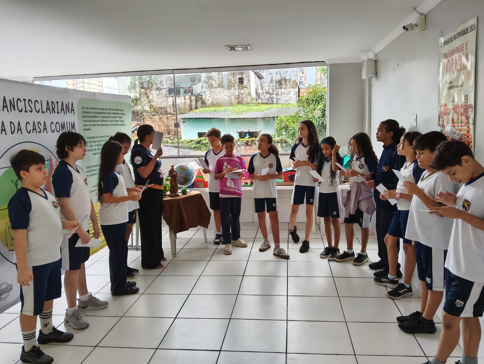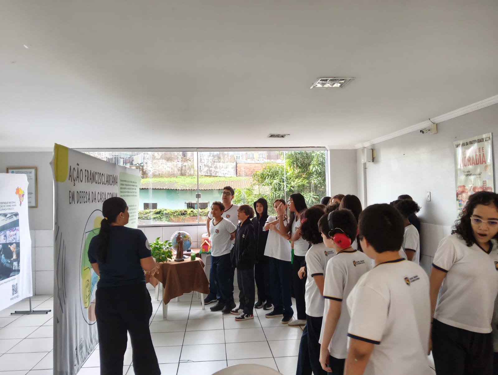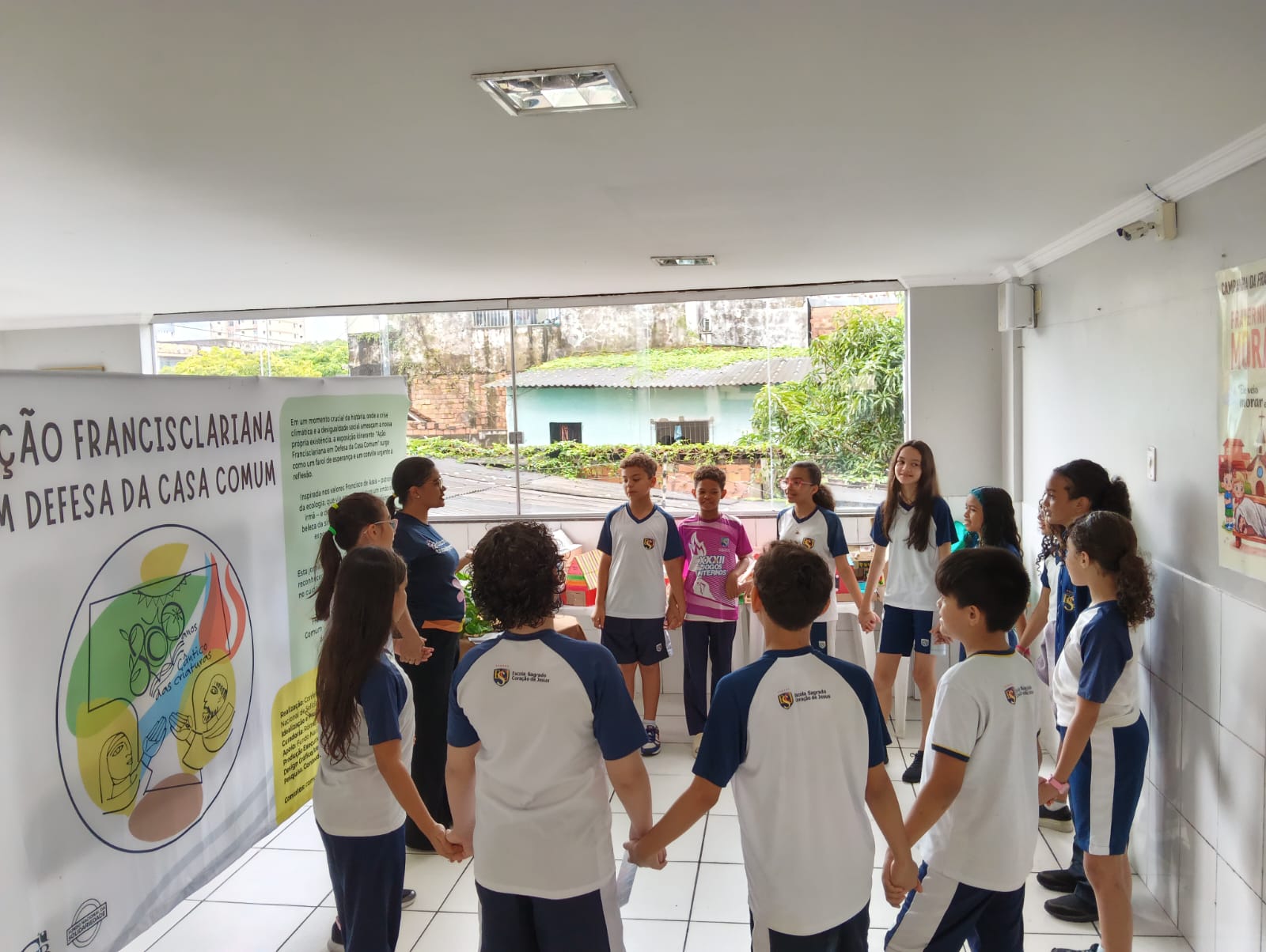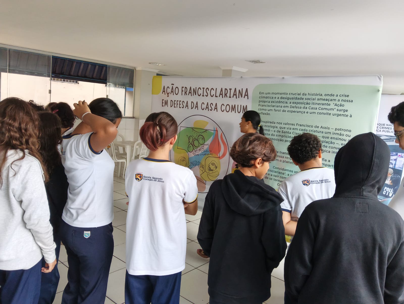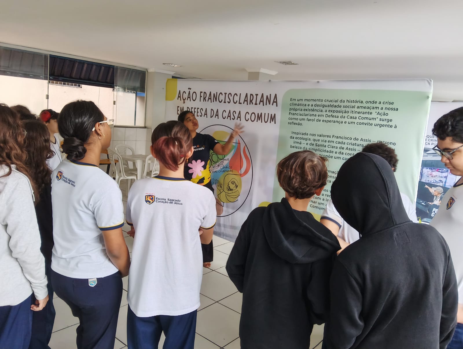 Como parte central dessa programação, a escola recebe a Exposição Itinerante, que traz como tema central a “Ação Francisclariana em Defesa da Casa Comum“. A iniciativa busca conectar a espiritualidade francisclariana com os desafios contemporâneos de preservação ambiental e convivência ética.