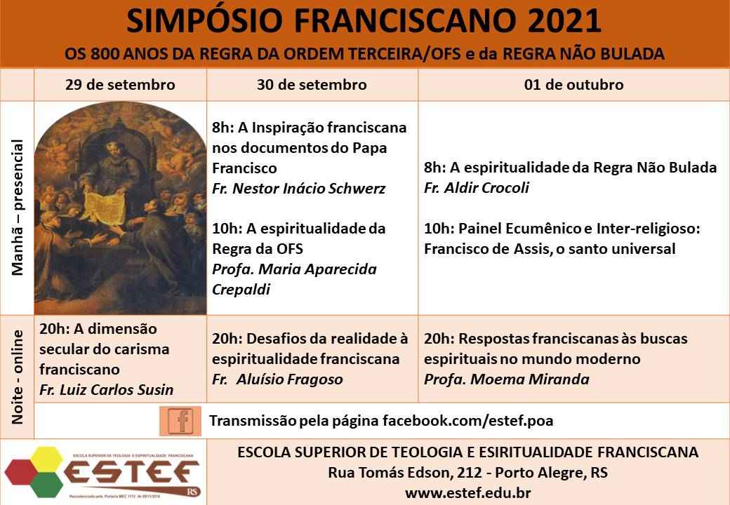 Anualmente a ESTEF – Escola Superior de Teologia e Espiritualidade Franciscana realiza um Simpósio Franciscano destinado aos estudantes, à Família Franciscana e a toda a comunidade.