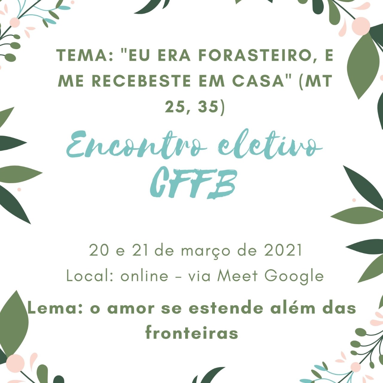 Em reunião com os coordenadores de núcleo tínhamos previsto fazer a nossa assembleia de forma híbrida (presencial e on-line) nos dias 19, 20 e 21 de Março. No entanto com o surgimento da segunda onda da Covid-19 isto é impossível. Assim sendo faremos de forma on-line nos dias 20 e 21, Com o Tema: Eu era forasteiro e me recebeste, Mt 25,35 e o Lema: “o Amor se estende para além das fronteiras”. Sendo no dia 20 pela manhã das 9h30 às 11h30 – Formação com frei Ildo Perondi, OfmCap que falará sobre a Carta Encíclicas Fratelli Tutti do Papa Francisco e na parte da Tarde das 14h às 16h – Relatório das Atividades dos núcleos, OFS, Jufra e Coordenação CFFB-PR, indicações de prioridades e a prévia de nomes para a nova coordenação.